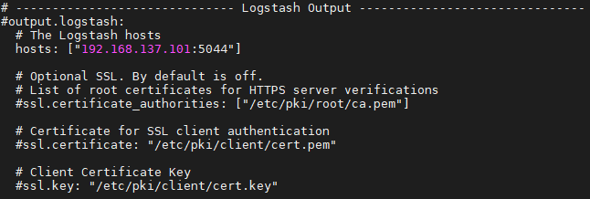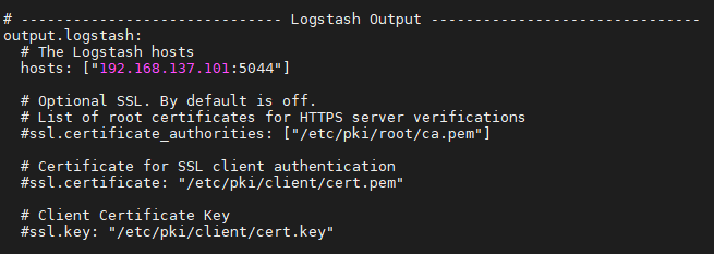 - filebeat.yml Logstash Output 부분에 output.logstash가 주석처리 되어 있었음