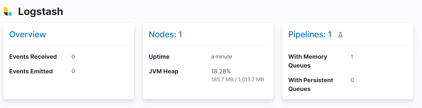 - Kibana -> Stack Monitoring์์ Logstash๊ฐ ์ฐ๊ฒฐ๋๋์ง ํ์ธ